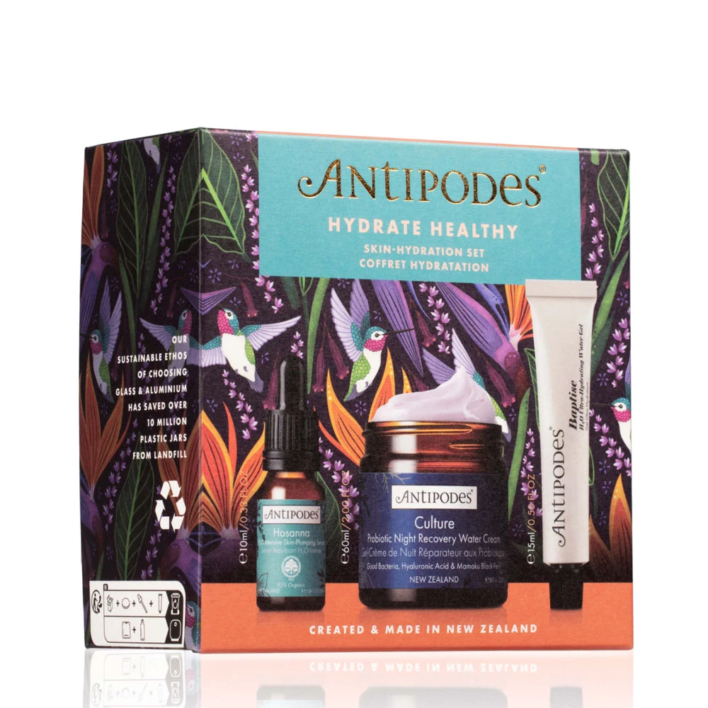 Ápold a bőröd ezzel a hidratáló csomaggal, amely tiszta, 100%-ban természetes eredetű formulákkal készült. A növényi hialuronsav és a manuka méz nyugtat és hidratál, míg az új-zélandi őshonos mamaku fekete páfrány javítja a bőr tisztaságát. A Kalibiome AGE probiotikum kiegyensúlyozza a mikrobiomot és tovább véd a nedvességveszteség ellen.