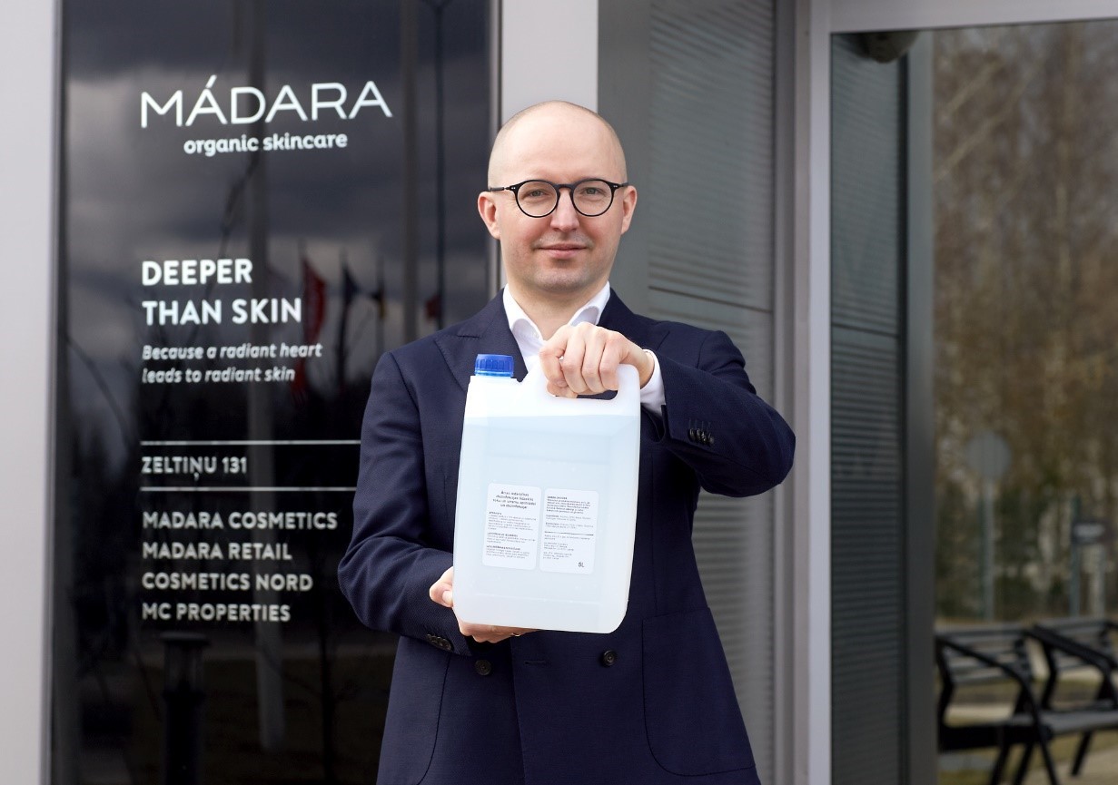 Uldis Iltners a MÁDARA Cosmetics igazgatósági tagja szerint: „egy egységként kell dolgoznunk ebben a válsághelyzetben. Amikor a minisztérium megkeresett minket, egy percig nem gondolkoztunk, részt kell vennünk az ország védekezésében. Vállaltuk, hogy 5000 liter etil alkoholt fertőtlenítő szerré dolgozzuk fel, ezt a társadalmi felelősségvállalási programunk részeként hajtottuk végre, remélve, hogy ezzel is hozzájárulhatunk a vírus terjedésének csökkentéséhez.”