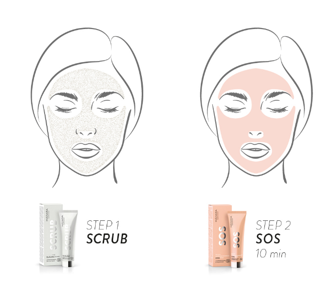 Bátran keverd össze a két pakolást. Az iszap méregtelenít és alaposan tisztít, még az SOS maszk bazsarózsája és a természetes hialuronsav a mélyebb rétegekben is hidratál. Hagyd hatni 10 percig, majd mosd meg az arcodat.