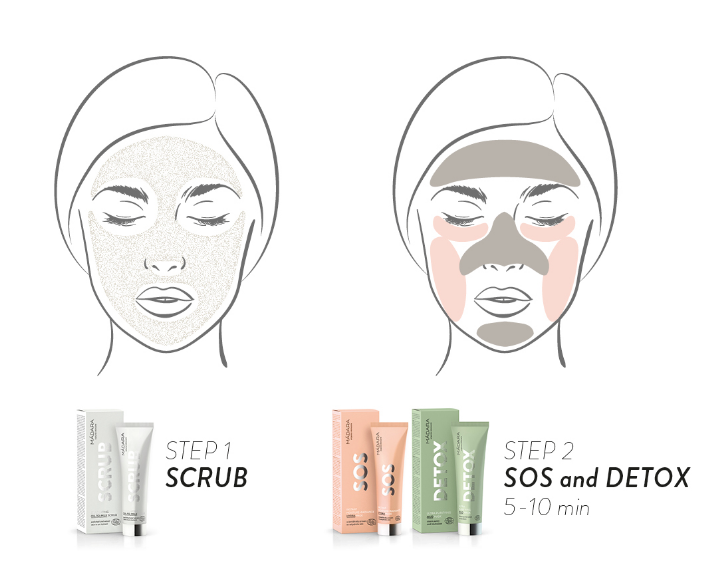 2. lépés: SOS hidratáló maszk + DETOX mélytisztító iszappakolás