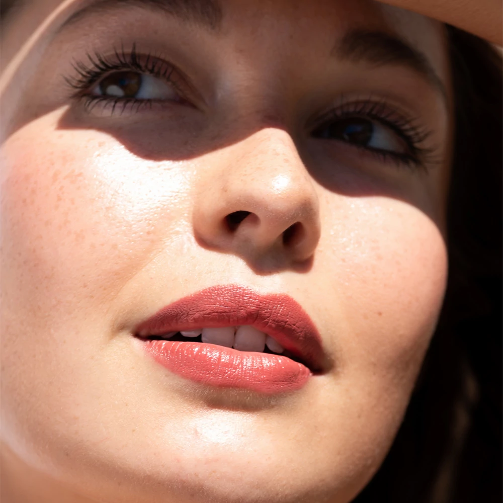 A legszebb eredményért mindig legyen kihegyezett a ceruza! Először rajzold meg az ajkad kontúrját, majd töltsd ki az egész területét! A gyűrűsujjad segítségével ütögesd fel az orcádra! Kérlek, vedd figyelembe, hogy az újrahasznosított kupak miatt az első alkalommal picit nehezebb kinyitni a ceruzát!