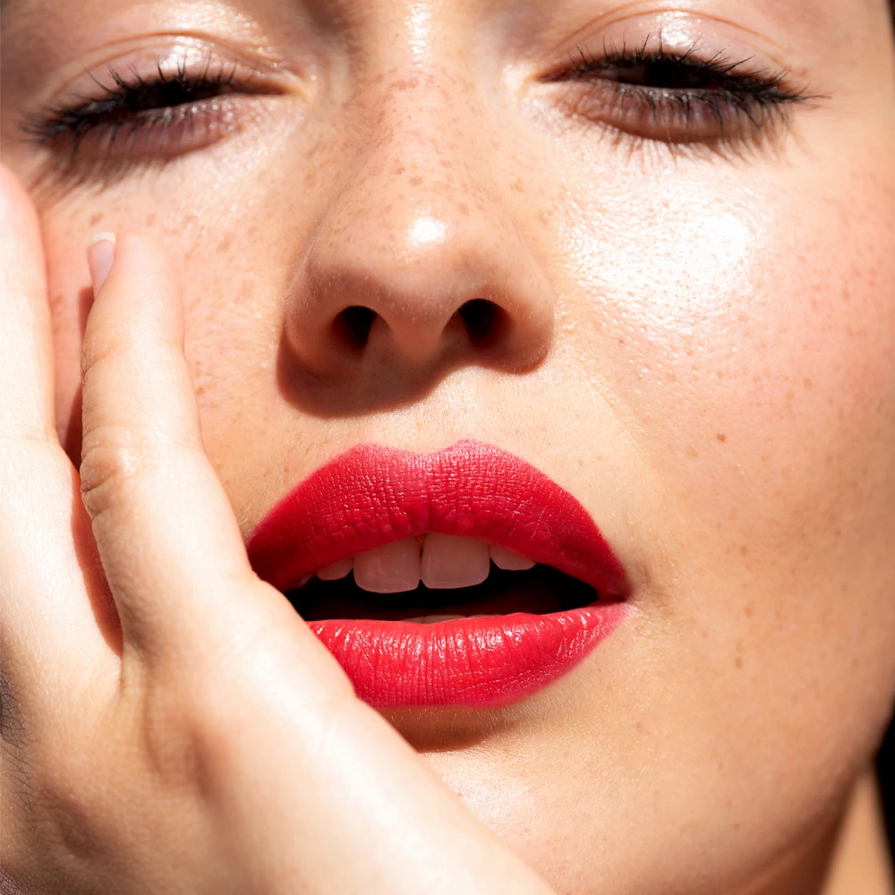 A legszebb eredményért mindig legyen kihegyezett a ceruza! Először rajzold meg az ajkad kontúrját, majd töltsd ki az egész területét! A gyűrűsujjad segítségével ütögesd fel az orcádra! Kérlek, vedd figyelembe, hogy az újrahasznosított kupak miatt az első alkalommal picit nehezebb kinyitni a ceruzát!
