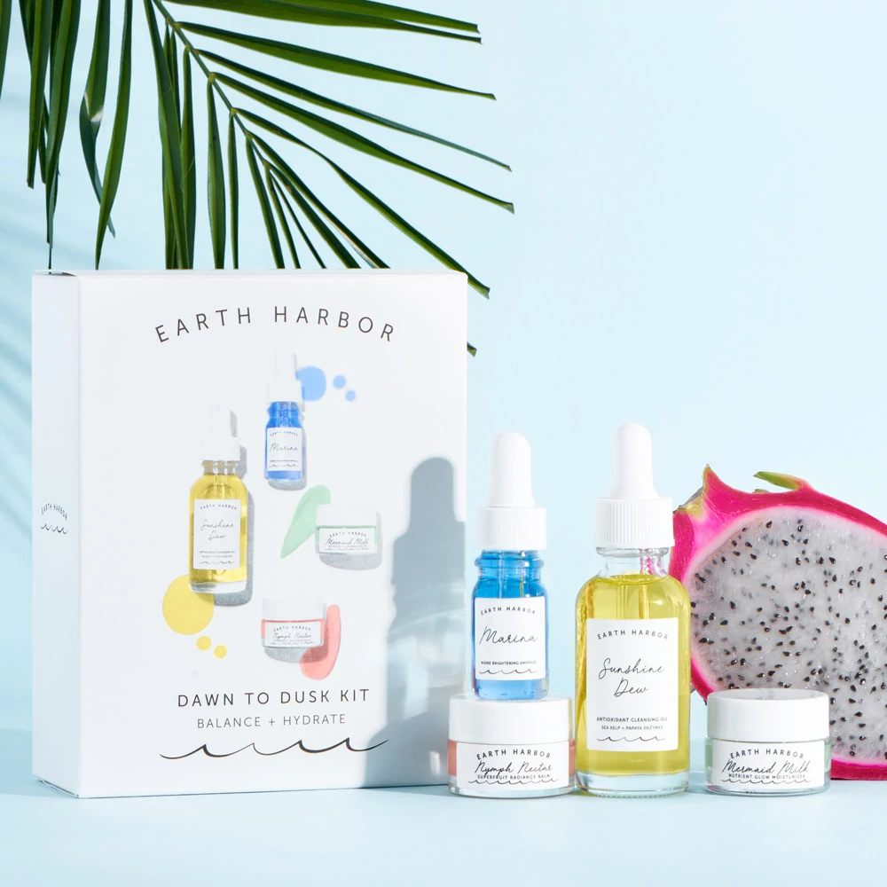 A Dawn to Dusk mini kollekció tökéletes tápláló arcszínt biztosít a kiegyensúlyozó és hidratáló rituáléval, amelyet a csaomgban található EARTH HARBOR termékek szinergiája garantál.