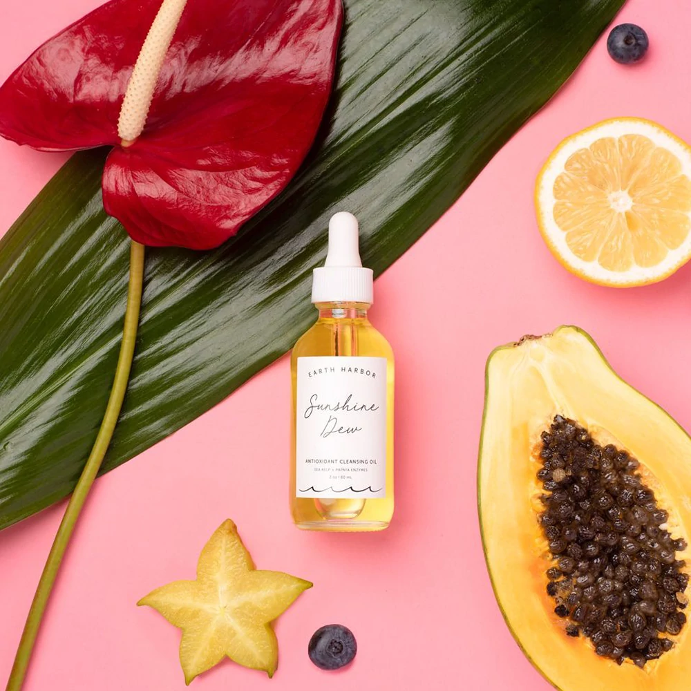 Az édes trópusi napsütés selymes harmatcseppjei eltávolítva a szennyeződéseket, a tisztátalanságokat és a sminket. A tengeri moszattal + papaya enzimekkel dúsított, antioxidánsokban gazdag olajok felébresztik érzékeidet, miközben mélyrehatóan tisztítják és lágyítják arcbőrödet. A Sunshine Dew vízzel teljesen leöblíthető; nincs olajos érzés. Csak egy könnyed olajos masszázs és öblítés, amely friss, puha, hidratált és ragyogó bőrt hagy maga után.