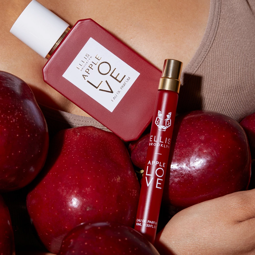 Egy illatos szerelmes levél NYC-nek. Az ikonikus nagyváros energiája és kifinomultsága az APPLE LOVE, mely egy jellegzetes borostyán ínyenc. A parfüm lédús, fotorealisztikus almával robban át, és a barackbőr, a gyöngyvirág, a szilvavirág, a cukornád és a vanília városi, elegáns, ultrasima keverékévé válik.