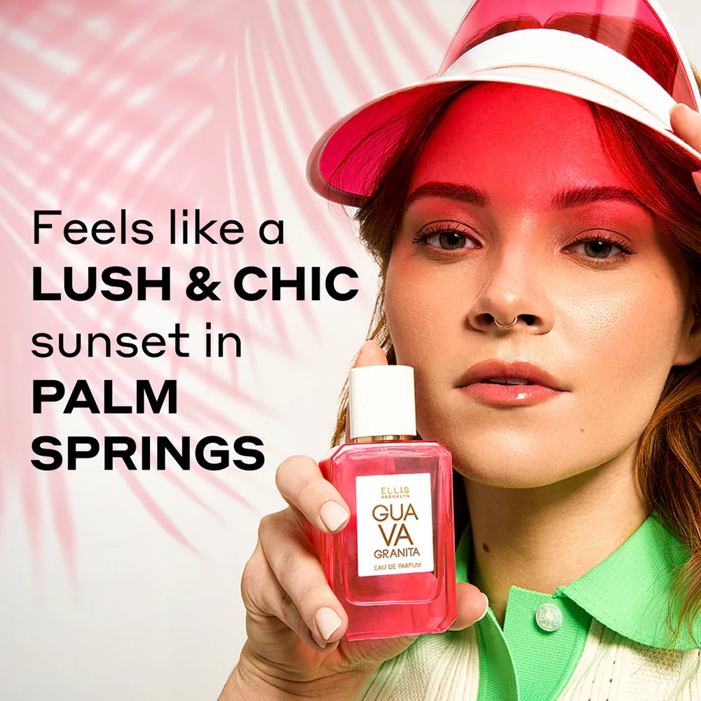 Üdvözöljük a Club EB-ben, Palm Springsben, ahol a játékos szórakozás és a modern sikkesség találkozik a GUAVA GRANITA eau de parfümben. A trópusi gyümölcsös finomságok (guava, banán, mangóvirág) keverékét és a vanília és mandulatej gazdag alapját kínáló GUAVA GRANITA egy luxus kikapcsolódás, amely egyszerre irreleváns és előkelő.
