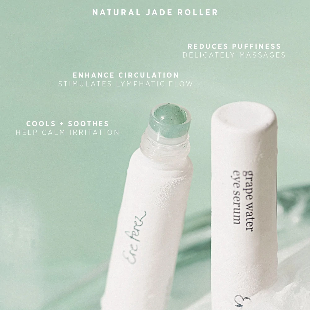 Ez a frissítő szem környéki szérum a finom szem alatti területre összpontosít, feszesebbé, simábbá és éberebbé varázsolva azt. A kollagéntermelést támogató és a finom ráncokat csökkentő peptideknek köszönhetően ez a könnyű szérum segít revitalizálni a fáradt szemeket. A szőlővíz, a hialuronsav és az édesgyökér hidratáló keveréke együttesen teltebbé teszi, nyugtatja és javítja a bőr rugalmasságát. A jáde kő jótékony hatásait kihasználva a roll-on golyó azonnal csökkenti a puffadtságot, fokozza a vérkeringést, valamint javítja a termék felszívódását.