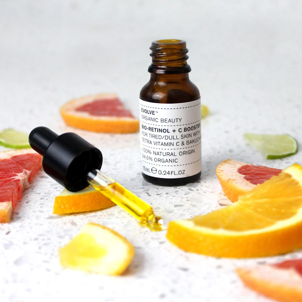 A bio-retinol és C-vitamin szérum kombinációja rendkívül erőteljes, ugyanis ebben a boosterben 4 erőteljes vitamin, az A-, C-, F- és E-vitaminokat kombinálták a csipkebogyó olaj bázisban. Így a formula mélyebben tud behatolni a bőrbe, mint egy átlagos víz bázisú termék. Az A- és C-vitamin támogatja a bőröregedés elleni folyamatokat, serkenti a kollagéntermelést és a hidratációt. Mindezek mellett a bőr visszanyeri régi, természetes ragyogását, a plusz lendületet pedig az antioxidánsokban gazdag E-vitamin adja meg a bőrödnek!