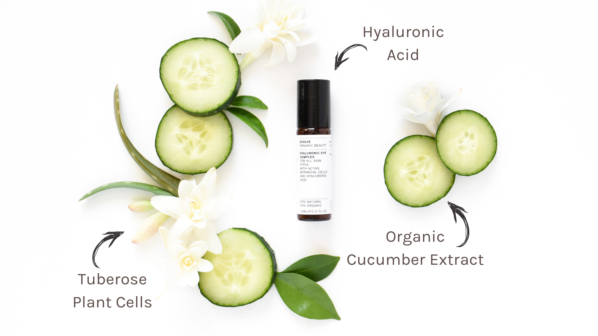 A formulában felhasznált egzotikus tubarózsa őssejt kivonat segít csökkenteni a szem körüli puffadást, táskákat, finom ráncokat. Használatával az érzékeny szemkörnyéki terület feszes és ragyogó lesz! Közismert, hogy a hialuronsav képes megkötni a súlyánál 1000x több vizet, így csökkenti a ráncok mélységét és a megjelenés is fiatalos lesz. A formulát uborka kivonat gazdagítja, ami hűsít és nyugtat.