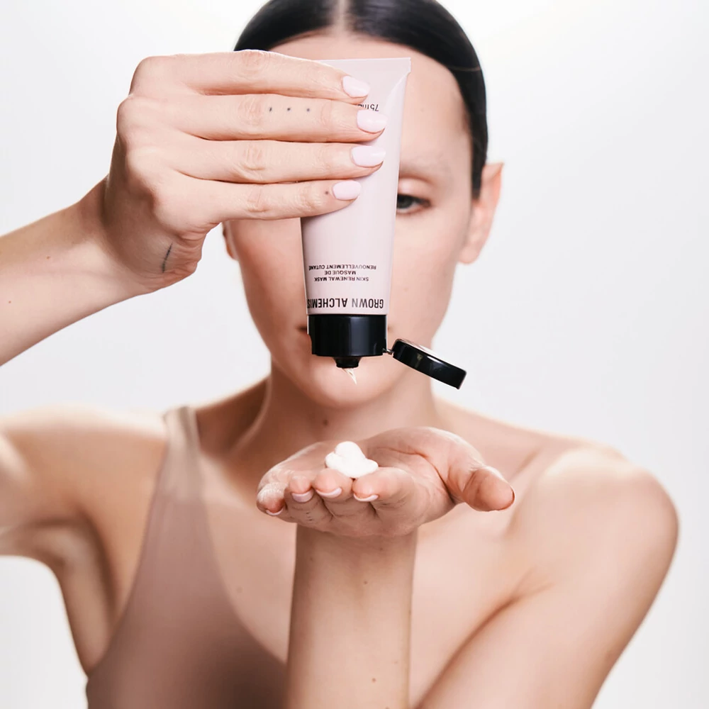 A GROWN ALCHEMIST SKIN RENEWAL bőrmegújító maszkjával hámlasztást és tisztítást is végezhetsz egy lépésben, amely gyors megoldásként percek alatt simább, nyugodtabb és ragyogóbb arcbőrt garantál! A természetes AHA savak, az adaptogén gombakivonat, a nyugtató Echinacea, valamint a kaolin és a bentonit agyagok regeneráló formulája szinte csodákat tesz a mélytisztításban, valamint az egyensúly és a hidratáció helyreállításában.