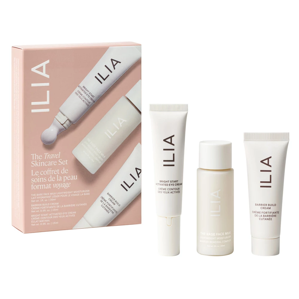 A kézipoggyászban is vihető utazó szett három hidratáló alapvető terméket tartalmaz a rugalmas bőrért – mindegyik biztonságos az érzékeny bőr számára, bőrgyógyász által tesztelt és illatanyagmentes.