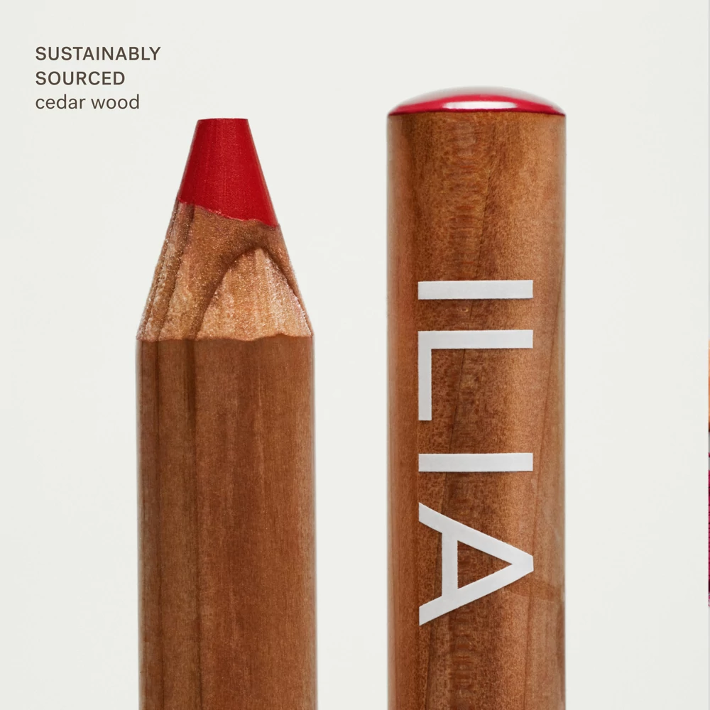 Fenntartható forrásból származó cédrusfából készült – az alapító édesapja, egy építész ihlette, aki cédrus ceruzával rajzolt. A kupak polipropilénből, a külső doboz pedig újrahasznosítható papírból készült.