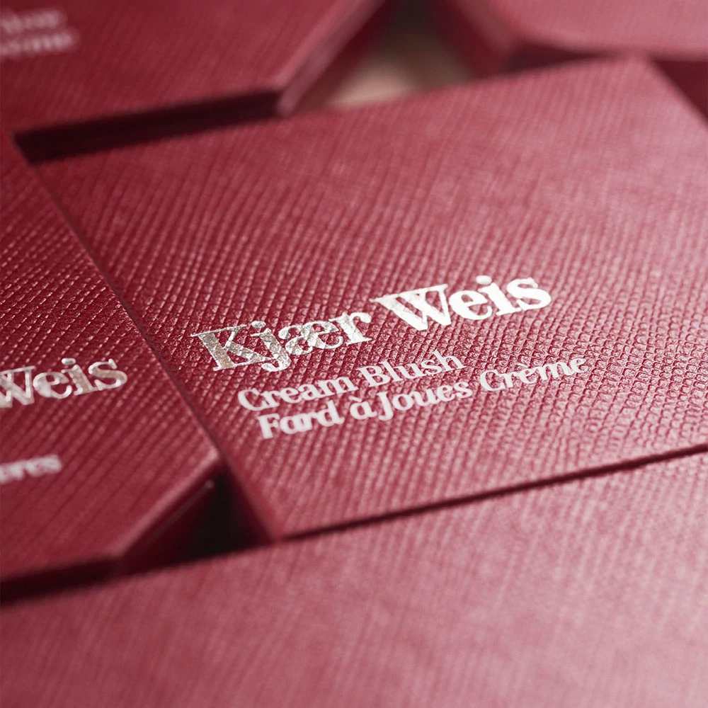 A Kjaer Weiss kompaktok tökéletes elhelyezésére készültek. A hulladék csökkentése érdekében az összes kompaktot úgy tervezék, hogy után tölthetők legyenek. Kirsten,  az alapító célja nagyon világos volt: „valami egyedit akartam, ami mégis fenntartható”. A piros karton csomagolások teljes mértékben újrahasznosíthatók.