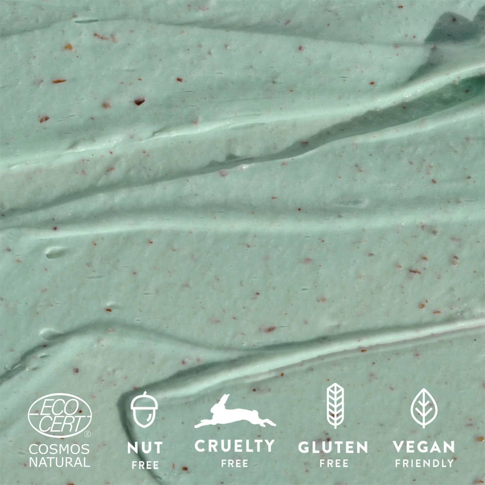 Erőteljes kombinációja az AHA savnak és a fehér agyagnak, puhítja, simítja és revitalizálja a bőrt, amely használata után selymes és ragyogó lesz. A koncentrált AHA sav leoldja az elhalt hámsejteket, megszünteti az eltömődött pórusokat, puha és fiatalosan ragyogó bőrt eredményez. Segít megszüntetni a pattanásokat és benőtt szőrszálakat. A gyengéd és természetes radírozó részecskék azonnal simítják a bőrt, közben a tápláló formula a hidratált és rugalmas bőrről gondoskodik.