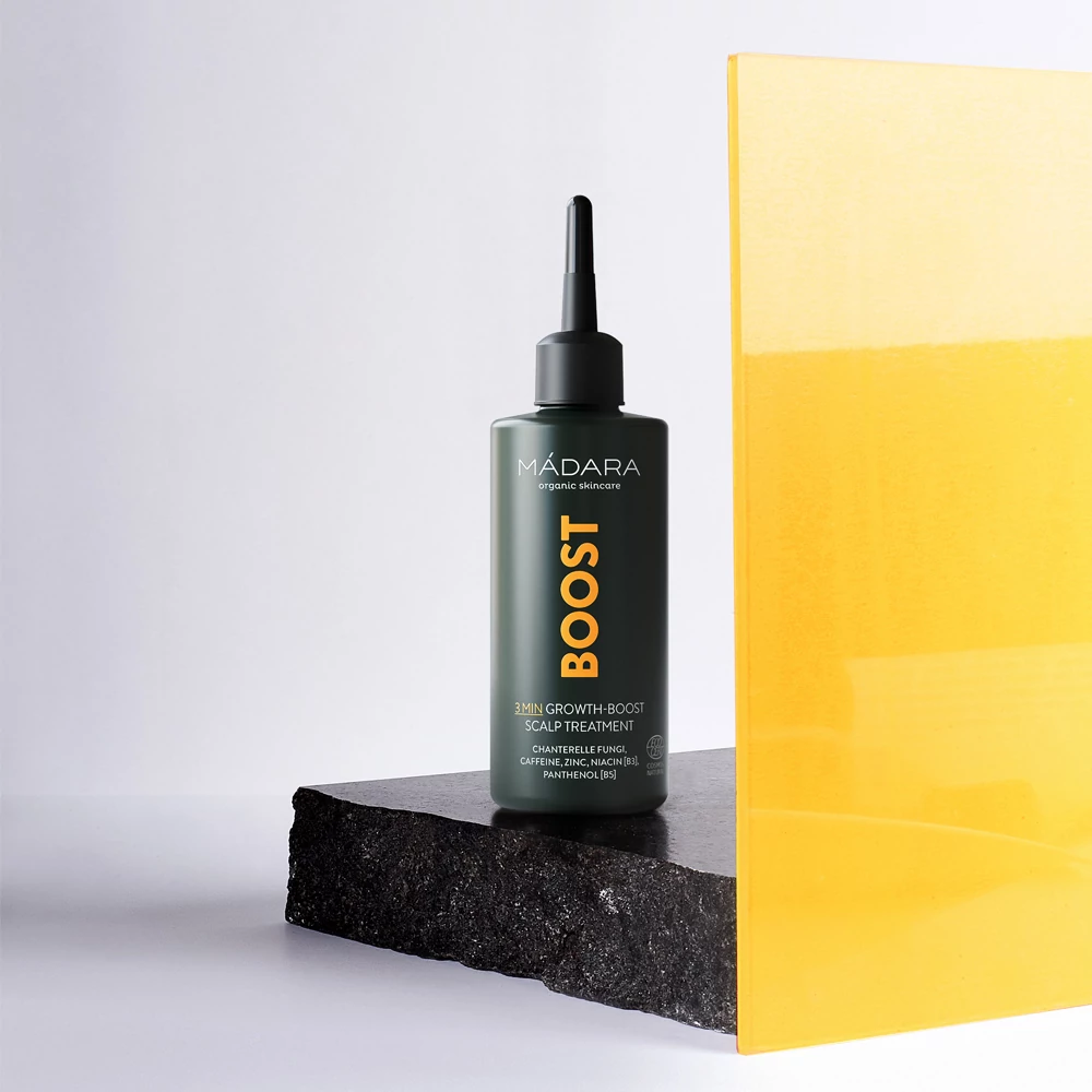 A gomba bázisú 3 perces elősampon feltölti a fejbőrt energiával a teljes és erősebb hajkoronáért. A Booster a fejbőr öregedési folyamatát, hajhullást és a vékonyszálú hajat célozza meg, már a hajgyökerektől segíti a haj volumenét rendbe tenni.
