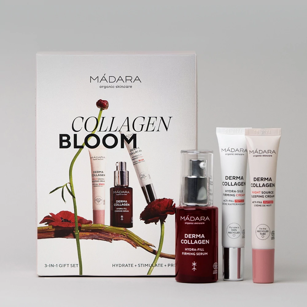 Egy teljes, természet ihlette rituálé, amely virágba borítja a bőröd, és minden olyan lépést biztosít, amelyre a kollagén támogatásához és a bőr általános jó közérzetének javításához szüksége van. Természetes eredetű peptidek, esszenciális fehérjék és aminosavak várnak ebben az erőteljes trióban, amely mini- és teljes kiszerelésű termékekből áll, amelyeket úgy terveztek, hogy harmóniában dolgozzanak.