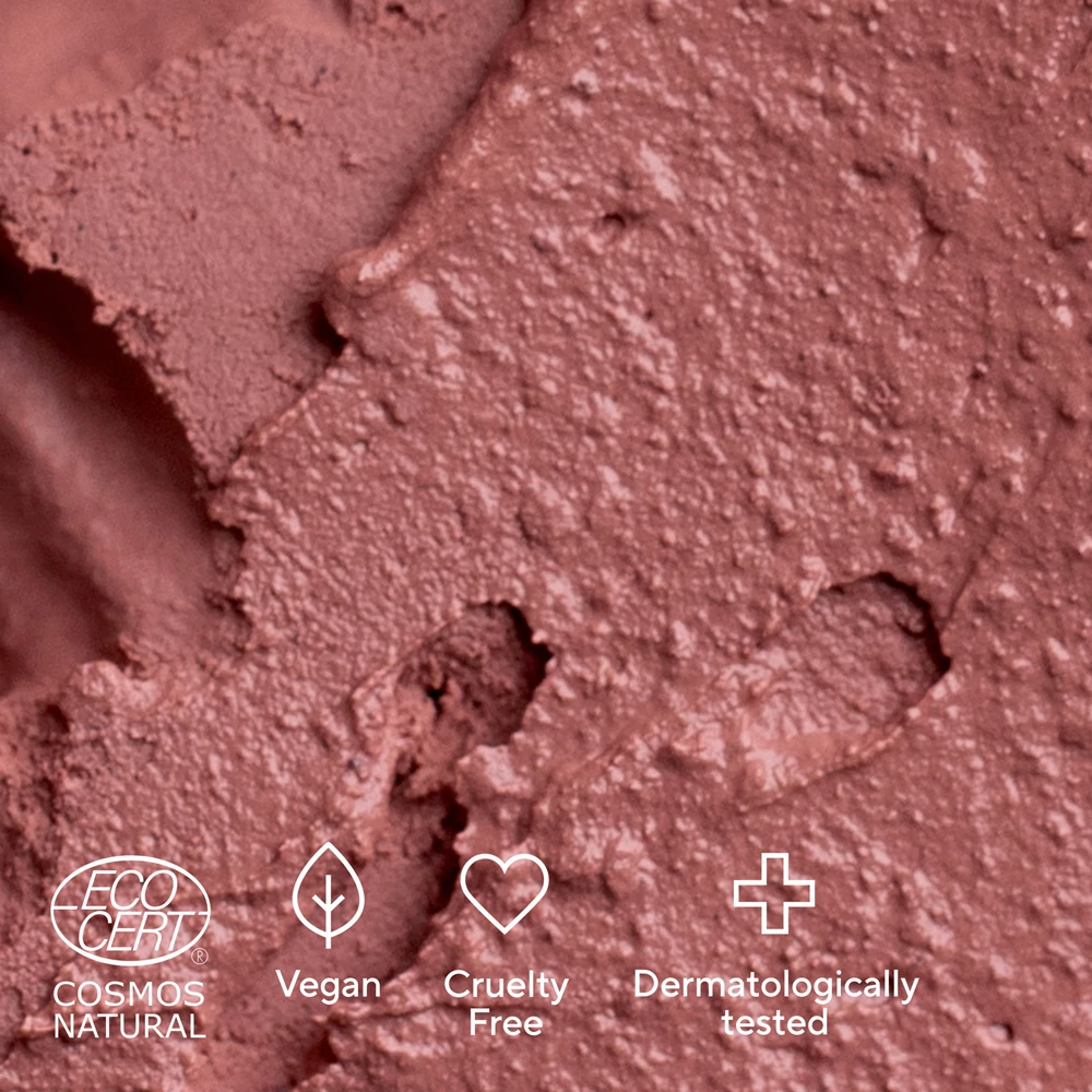 Minősített természetes és 100% vegán, tiszta ásványi pigmentekkel, szintetikus és állati eredetű színezékektől mentesek, ECOCERT Cosmos Natural minősítésű.