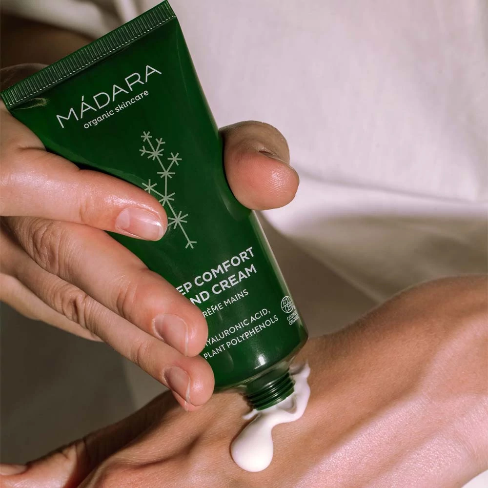 Ez a bársonyos, intenzíven hidratáló formula feltölti és puhává varázsolja a száraz bőrt, és tartósan gyengédségbe burkolja kezét. A galaj és az palástfű kivonata alapvető antioxidánsokkal látja el a bőrt, a hialuronsav hidratál, a kakaóvaj pedig ápol, puhítja és simítja.