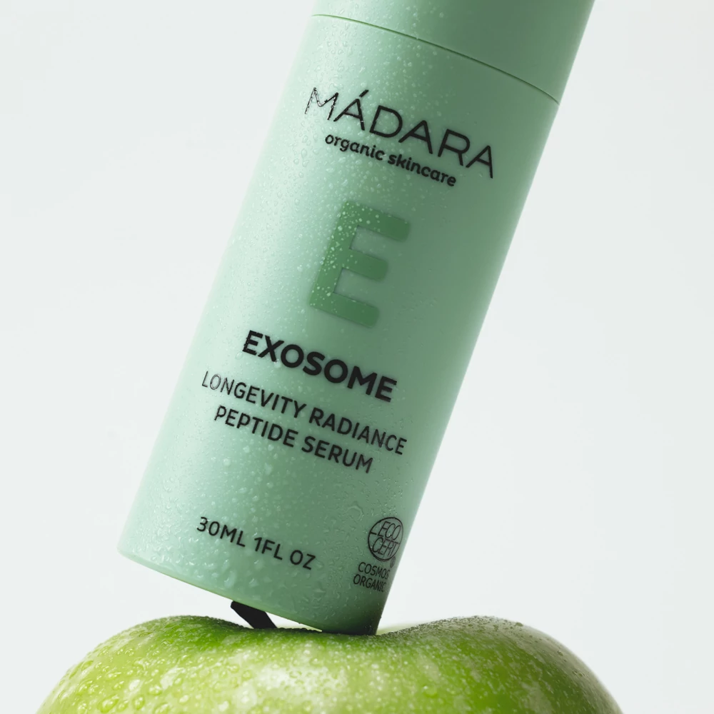 Almából kivont exoszóma: Az exoszómák az emberi test szinte minden sejtje által kibocsátott nanorészecskék, így minden egyes bőrsejt is rendelkezik saját exószómával. Az exoszómák jeleket továbbítanak a sejtek között, tulajdonképpen olyanok, mint a hírvivők, amelyek ,,üzeneteket’’ küldenek az egészségtelen sejteknek, és regenerálódásra késztetik őket. A kollagéntermeléshez hasonlóan, ahogy öregszünk, bőrsejtjeink exoszóma termelődése is lassul, melynek eredménye a bőr megereszkedése, és a ráncok megjelenése. Az Exosome szérum lehetővé teszi, hogy az új exoszómák beáramoljanak a bőrbe, segítsenek felébreszteni az inaktív bőrsejteket (az úgynevezett ,,idősebb” exoszómákat), hogy azok újra munkához lássanak. Az eredmény: A bőr minősége javul, erősebbé, fiatalosabbá, ragyogóbbá válik.