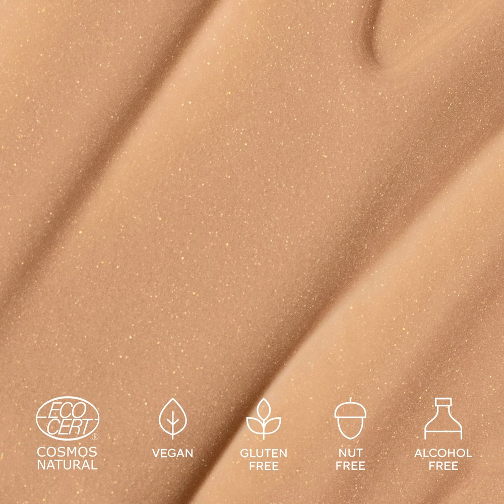 ECOCERT minősítés | Vegán | Bőrgyógyászatilag tesztelt | Egyenletes fedés | Friss, harmatos megjelenés | Könnyed hidratálás | Bőrszerű megjelenés Bőrbarát formula