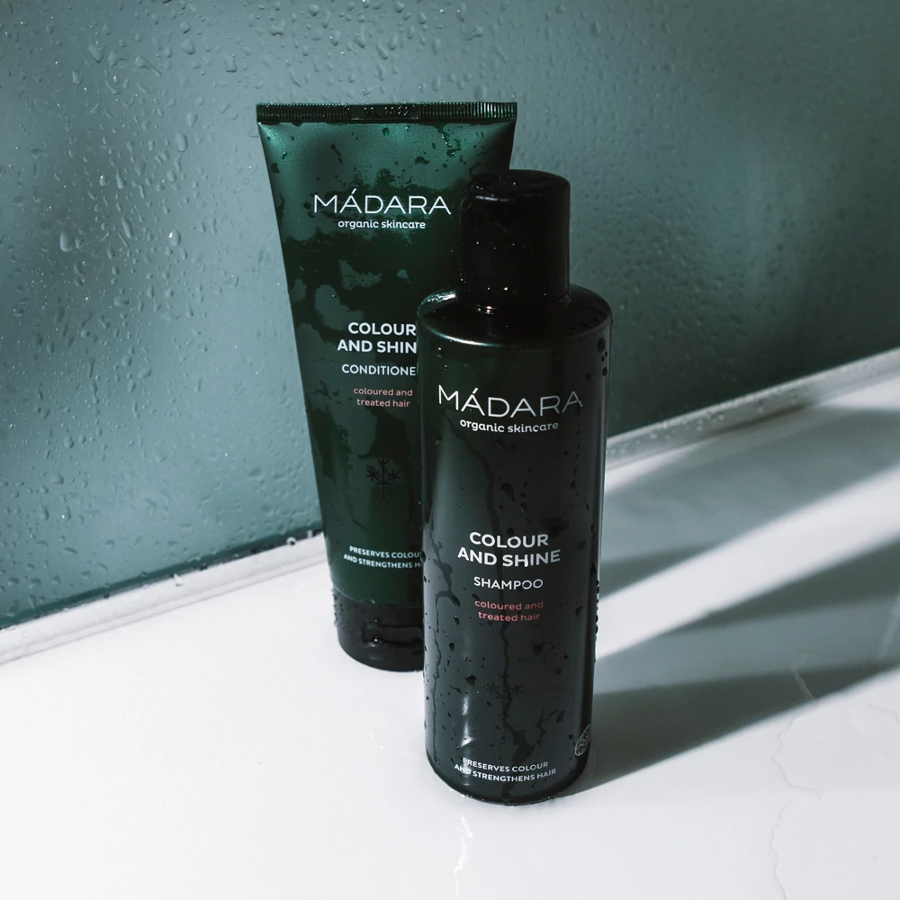 Masszírozza be a nedves hajba. Habosítsa fel és öblítse le. A legjobb hatás érdekében használja a MÁDARA Colour and Shine kondícionálóval.
