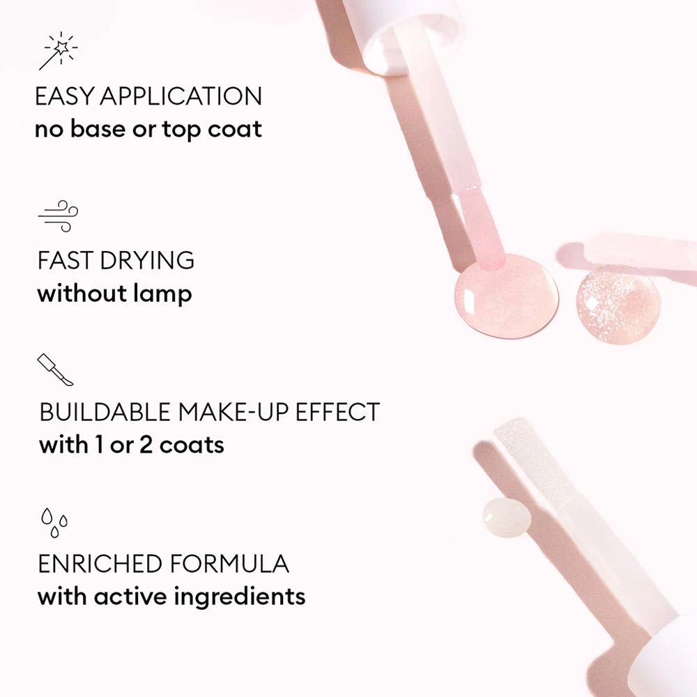 Az első kollagénes körömápoló lakk a hidratált, láthatóan teltebb körmökért. A körömápolás és a smink hibridje, ez a kollagénnel átitatott körömápoló lakk gyöngyházszínű babarózsaszín árnyalattal dúsító vizuális hatást biztosít. 74,5%-ban növényi alapú formulájával mélyen hidratál és táplál a növényi kollagén és őszibarack kivonatok keverékének köszönhetően.