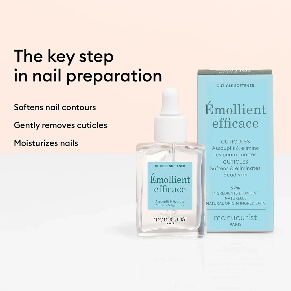 Az Emollient Efficace könnyedén eltávolítja a körömbőrt és az elhalt bőrt a körmök körül azáltal, hogy felpuhítja azokat. Ez elengedhetetlen lépés a körömlakk felhordása előtt, mivel elősegíti, hogy a lakk hozzátapadjon a körömlemezhez. Zselé állagú formulánk akár 97%-ban bio-forrásból származik, és glicerinnel dúsított, ami a precíziós felvitelt gyerekjátékká teszi.