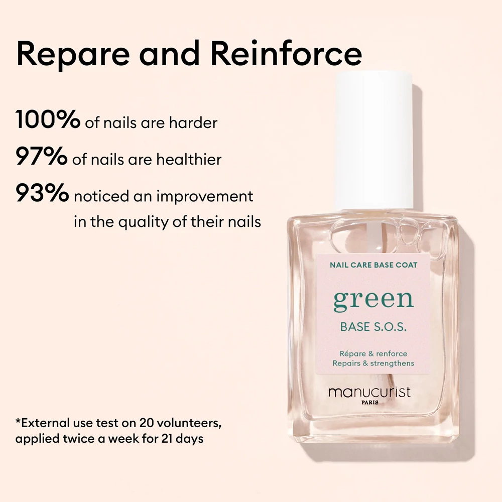 Az S.O.S Base Coat a kezelő alaplakk nagyon sérült vagy töredezett körmökre, amelyek könnyen törnek. Erősíti és újrastrukturálja a körömlemezt, miközben táplálja azt.