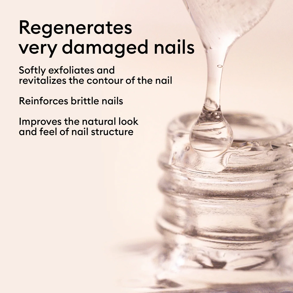 A B5-vitaminnal, C-vitaminnal és AHA-val dúsított kezelés akár 78%-ban biológiai eredetű. Már az első alkalmazástól kezdve hidratálja és erősíti a körmöket. Ideális kezelés 2 durva lakkozás (pl. közönséges gél lakkozás) között, egy hét használat elegendő a köröm regenerálásához!