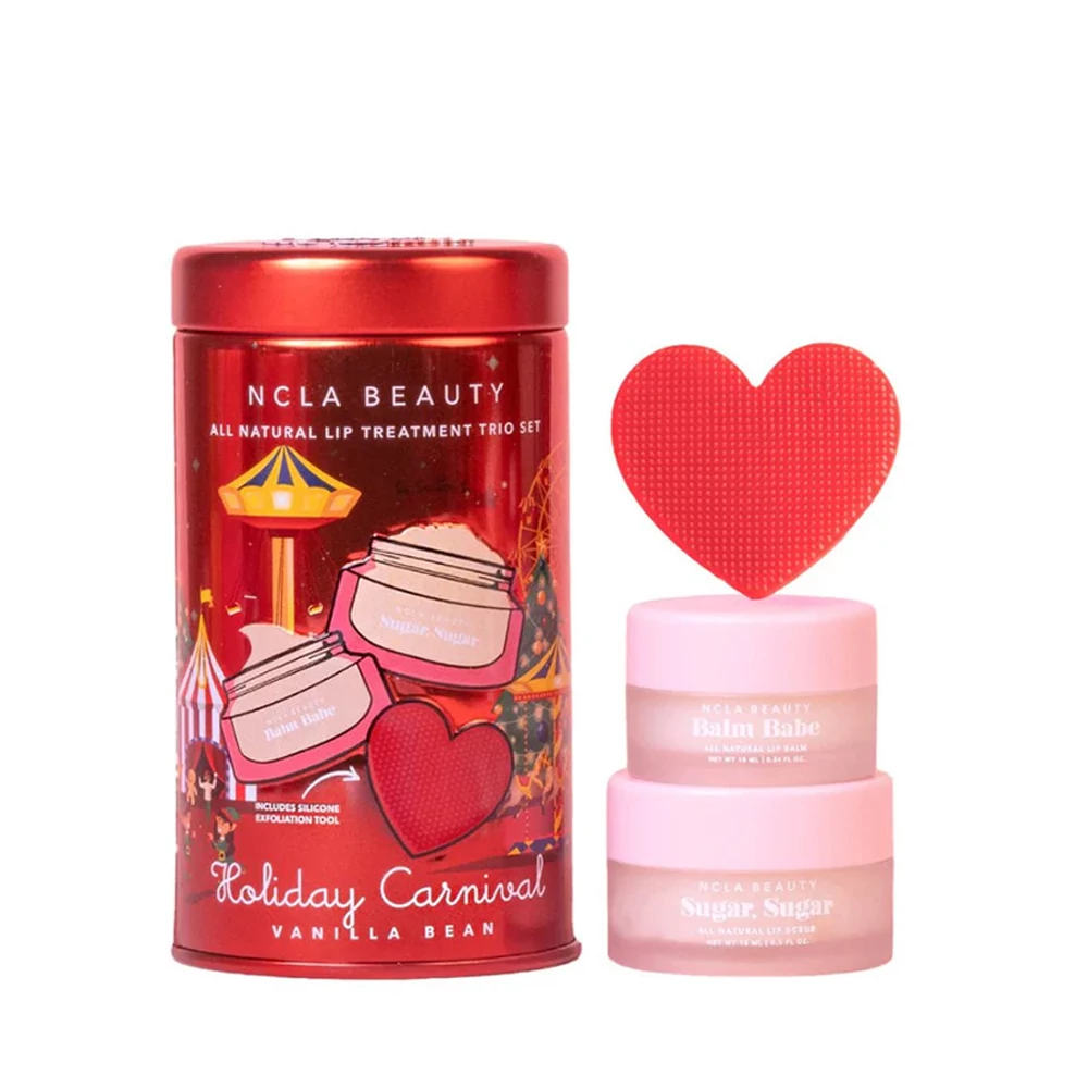 A Sugar, Sugar ajakradír gyengéden hámlaszt, hidratál és fényesít, míg a Balm Babe ajakbalzsam intenzíven nyugtatja és táplálja az ajkakat. Minden szetthez tartozik egy szilikon ajakradír a Sugar Sugar ajakradírhoz.