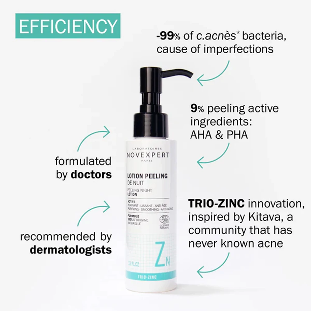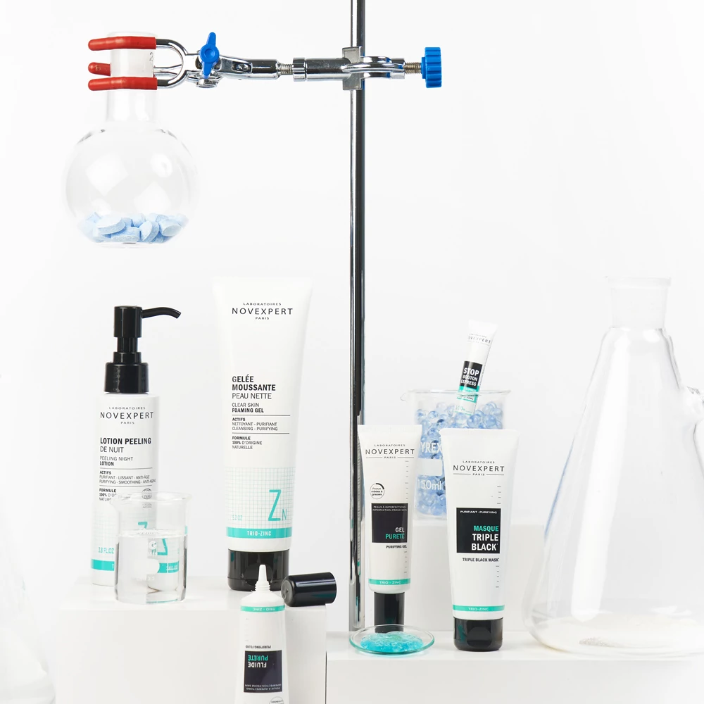 A Novexpertnél a cink 3 formáját (cink-laktátot, cink-PCA-t és cink-glükonátot) kombinálták a pattanások TÜNETEIre, de mindenekelőtt az OKokra, hogy megakadályozzák a kiújulást.
