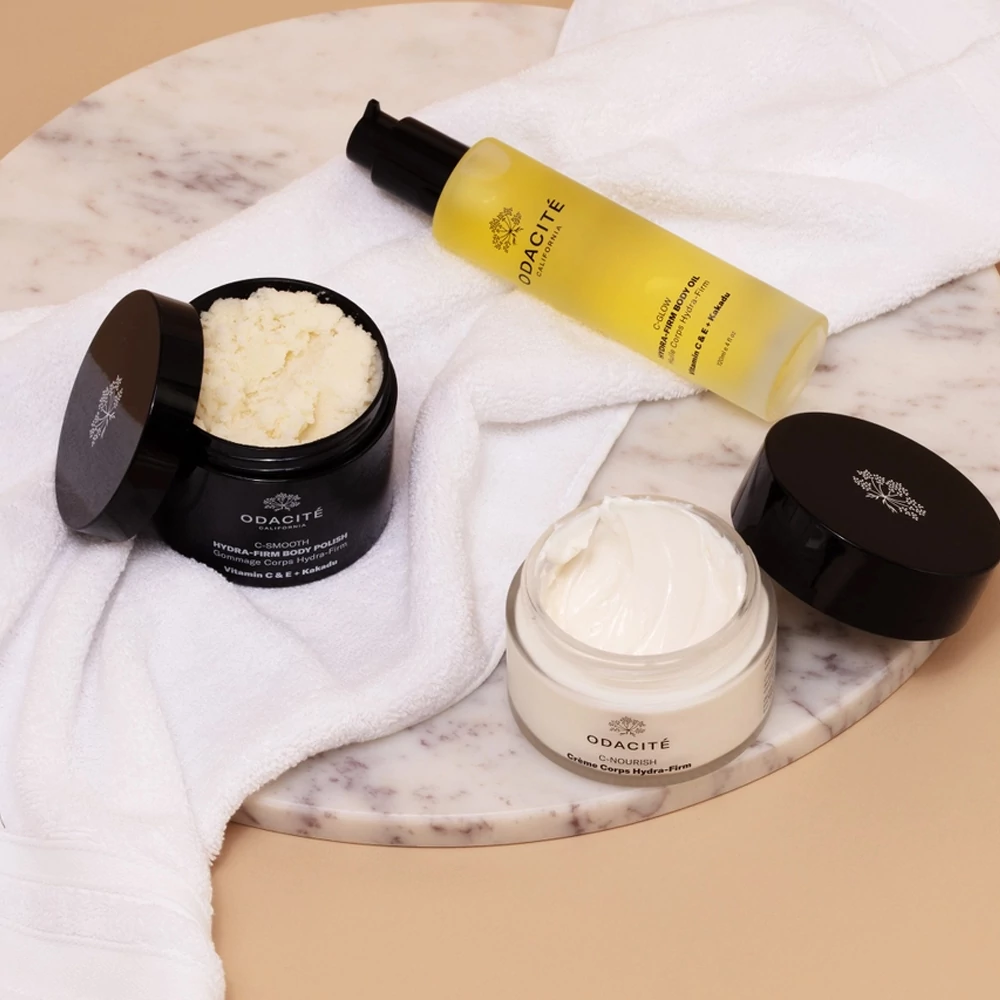 Több mint egy egyszerű testápoló: ez a fejlett formula gazdag bőrpuhító összetevőket és növényi vajakat kombinál egy erőteljes, kettős forrású C-vitamin komplexszel – amely olajban oldódó Tetrahexyldecyl Ascorbate-ot és antioxidánsokban gazdag Kakadu szilvát tartalmaz –, hogy a bőrt puhává, láthatóan feszesebbé és ragyogóvá varázsolja.