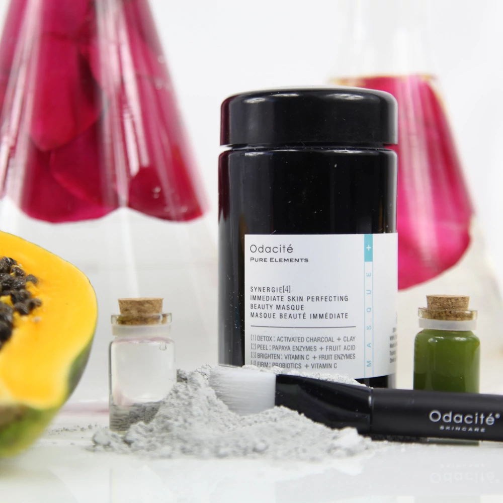Kaolin Clay, Bentonite Clay, Papain Powder [Papaya Enzymes], Lactobacillus Acidophilus [Probiotics], Magnesium Ascorbyl Phosphate [Vitamin C], Activated Charcoal, Tartaric Acid [AHA Fruit Acid], Malic Acid [Fruit Acid]