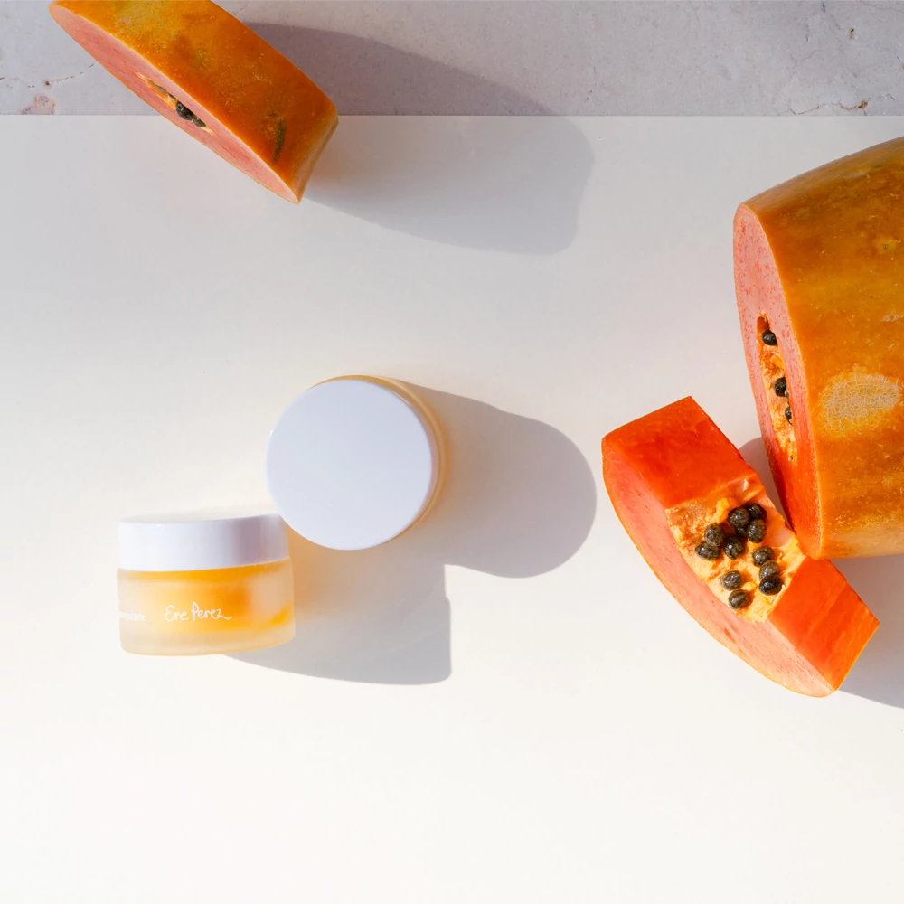 papaya: a gyümölcs fermentált kivonatát növény terméséből és leveleiből készítik. Magas antioxidánsokban, káliumban és vitaminokban. A fermentáció felgyorsítja az alatvető tápanyagok és enzimek felszívódását a bőrbe.
