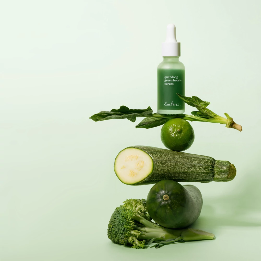 Támogasd a bőröd ezzel a szuper tápláló zöld smoothie-val! Az antioxidánsban gazdag keverék olyan szuper összetevőkből készült, amelyen támogatják a bőröd egészségét és ragyogását. A sivatagban megtalálható gyümölcs; a quandong (2x nagyobb mennyiségű C-vitamint tartalmaz, mint a narancs) csökkenti a korai öregedés első jeleit, nyugtatja az irritált bőrt. Klorofilt, spenótot, E-vitamint, lucerna és málna mag olajat, esszenciális enzimeket és A-vitamint tartalmaz. Tiszta összetevői azonosak a bőrrel. Támogatja a bőr rugalmasságát, csökkenti a szárazságot, elég egy pici mennyiség is belőle. A lehető legjobb, amit csak a bőrödnek adhatsz!