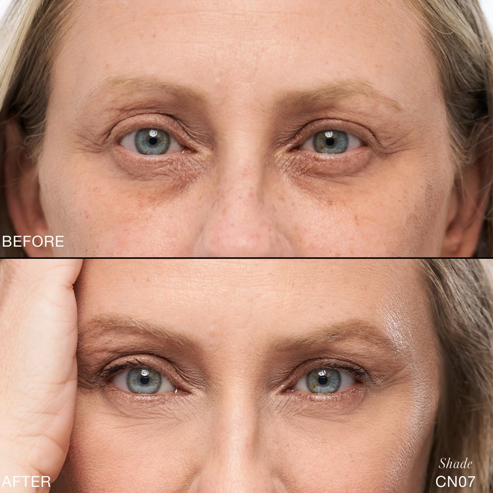 Ráncálló és ultra tápláló formulájának köszönhetően egy multifunkciós szemkörnyékápoló krém előnyeit nyújtja, revitalizálja a finom szemkörnyéket és javítja a bőr textúrájának megjelenését, miközben zökkenőmentesen korrigálja és elrejti a sötét karikákat, a tökéletlenségeket és a bőrpírt sima, hosszan tartó fedéssel. A könnyű, krémes állag súlytalannak érződik, és könnyedén beolvad anélkül, hogy ráragadna, vagy a finom vonalakba vagy pórusokba rakódna.