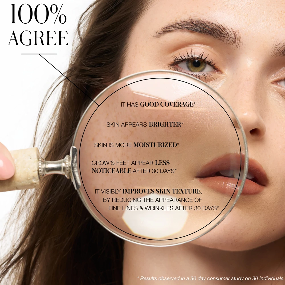 Ráncálló és ultra tápláló formulájának köszönhetően egy multifunkciós szemkörnyékápoló krém előnyeit nyújtja, revitalizálja a finom szemkörnyéket és javítja a bőr textúrájának megjelenését, miközben zökkenőmentesen korrigálja és elrejti a sötét karikákat, a tökéletlenségeket és a bőrpírt sima, hosszan tartó fedéssel. A könnyű, krémes állag súlytalannak érződik, és könnyedén beolvad anélkül, hogy ráragadna, vagy a finom vonalakba vagy pórusokba rakódna.