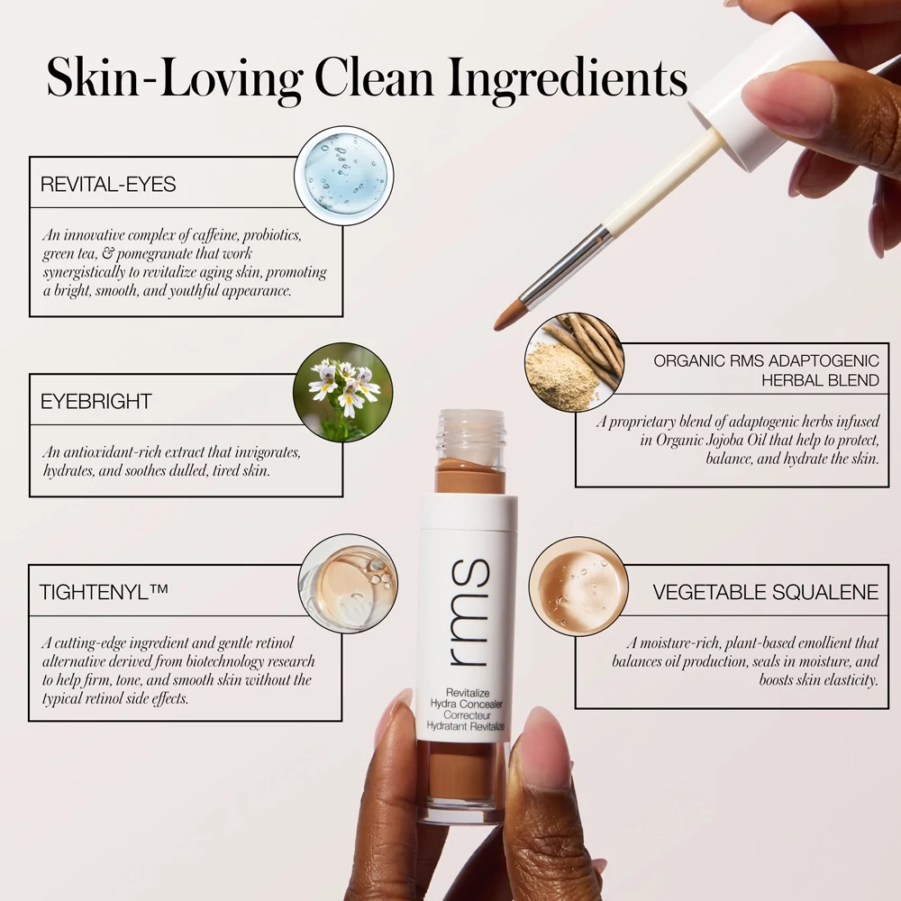 • Vékony, beépített ecsettel rendelkezik a precíz felvitelhez, és tele van hatékony, tisztító összetevőkkel, mint például az élénkítő szemvidítófű, az innovatív Revital-Eyes komplex, a bőrfeszesítő Tightyl™ (egy gyengéd retinol alternatíva), a hidratáló növényi szkvalán és a jellegzetes Organic RMS adaptogén gyógynövénykeverék – a ragyogóbb, simább, ragyogóbb arcbőrért, amely soha nem száraz vagy fakó.