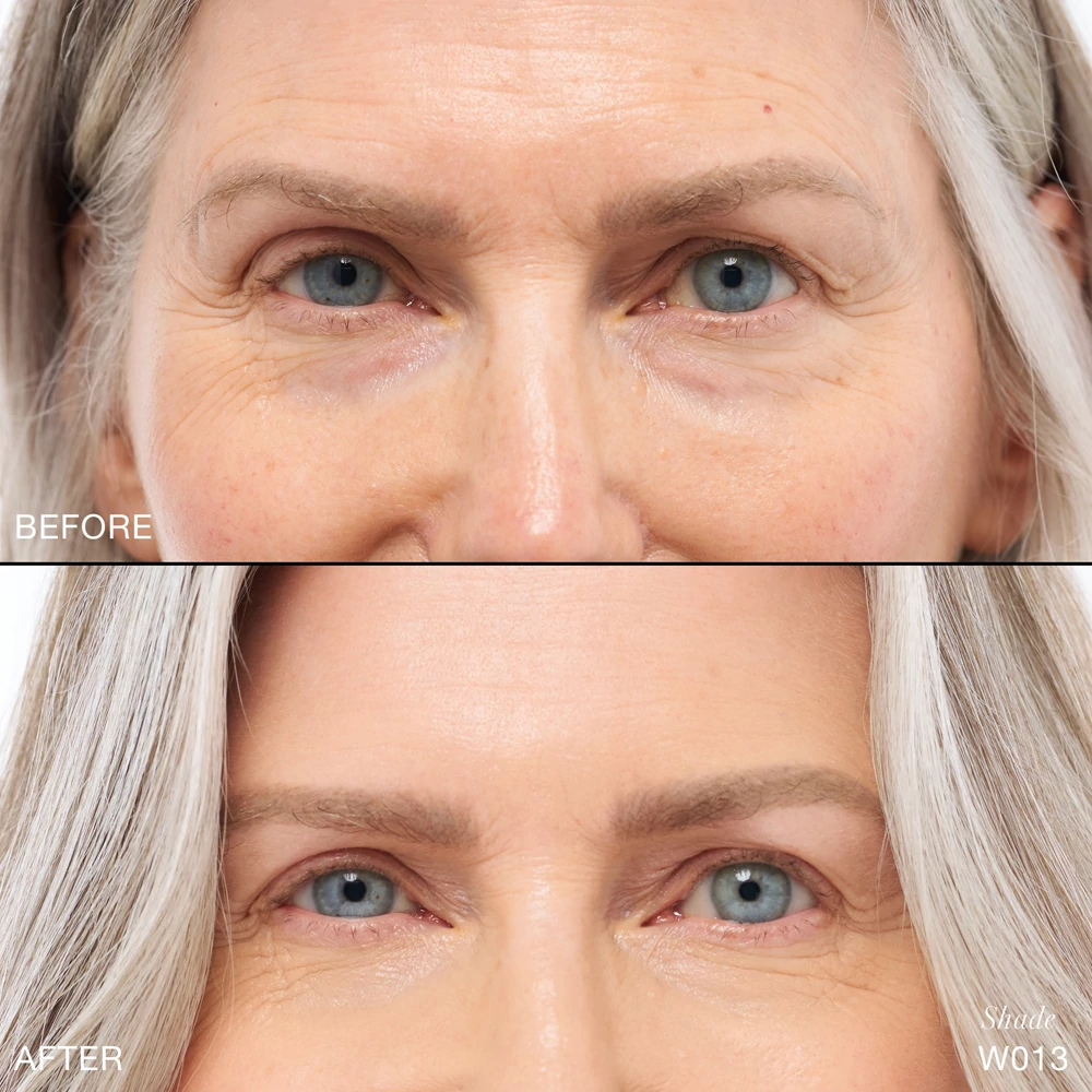 Ráncálló és ultra tápláló formulájának köszönhetően egy multifunkciós szemkörnyékápoló krém előnyeit nyújtja, revitalizálja a finom szemkörnyéket és javítja a bőr textúrájának megjelenését, miközben zökkenőmentesen korrigálja és elrejti a sötét karikákat, a tökéletlenségeket és a bőrpírt sima, hosszan tartó fedéssel. A könnyű, krémes állag súlytalannak érződik, és könnyedén beolvad anélkül, hogy ráragadna, vagy a finom vonalakba vagy pórusokba rakódna.