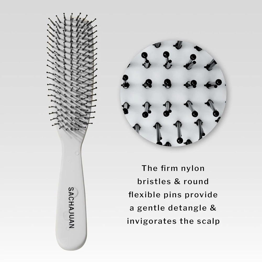 Úgy tervezték, hogy gyengéd, mégis hatékony kibontási élményt nyújtson, csökkentve a haj töredezésének és károsodásának kockázatát. A kefe puha nejlon sörtékkel és kerek, rugalmas tűkkel rendelkezik, amelyek végigsiklanak a hajon, gondosan kidolgozzák a csomókat, miközben védik a hajszálakat. Úgy tervezték, hogy élénkítse a fejbőrt kefélés közben, elősegítve az egészséges hajnövekedést és a sima, fényes felületet.