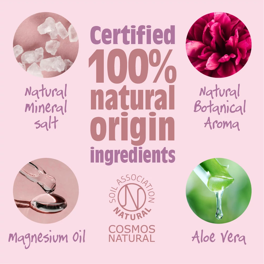 Illatos bazsarózsa csokor, szicíliai citrom csodás illata, természetes ásványi sók, magnézium olaj és nyugtató aloe vera gondoskodik az érzékeny hónaljad védelméről.