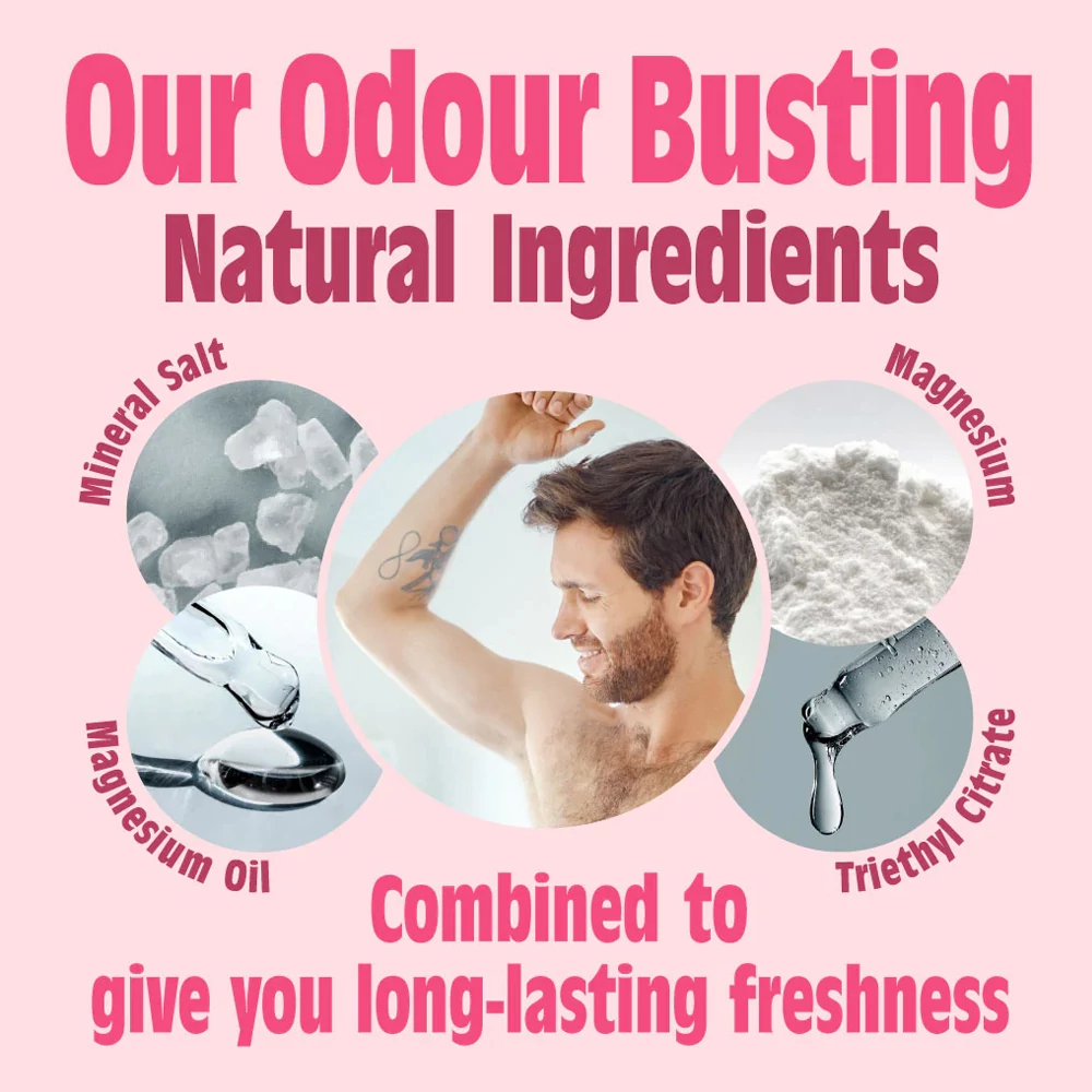 Aqua, Potassium Alum, Propanediol, Glycerine, Magnesium Chloride, Aloe Barbadensis Leaf Juice**, Triethyl Citrate, Polyglyceryl-10-Laurate, Sodium Bicarbonate, Xanthan Gum, Fragrance (Parfum)*, Galactoarabinan, Sodium Anisate, Citric acid. Limonene*, Benzyl Salicylate*, Coumarin*, Citral*, Citronellol*, Geraniol*, Linalool*, Anisyl Alcohol*. *From natural botanical extracts and essential oils. **Organically grown.