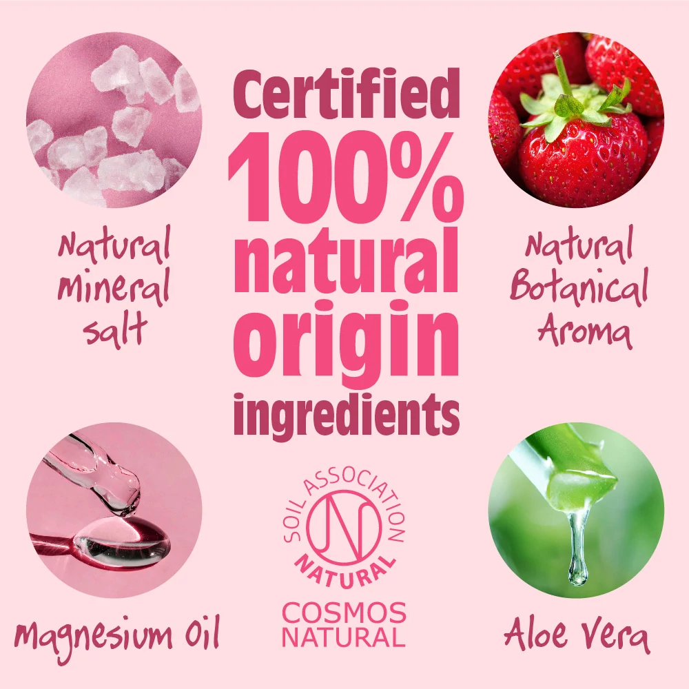 Édes eper illatú, vegán természetes dezodor hosszantartó, hatékony védelmet nyújt a testszag ellen, és 100%-ban természetes összetevőkből készül. Lédús eper illatú, zöld leveles és citrusos jegyekkel.