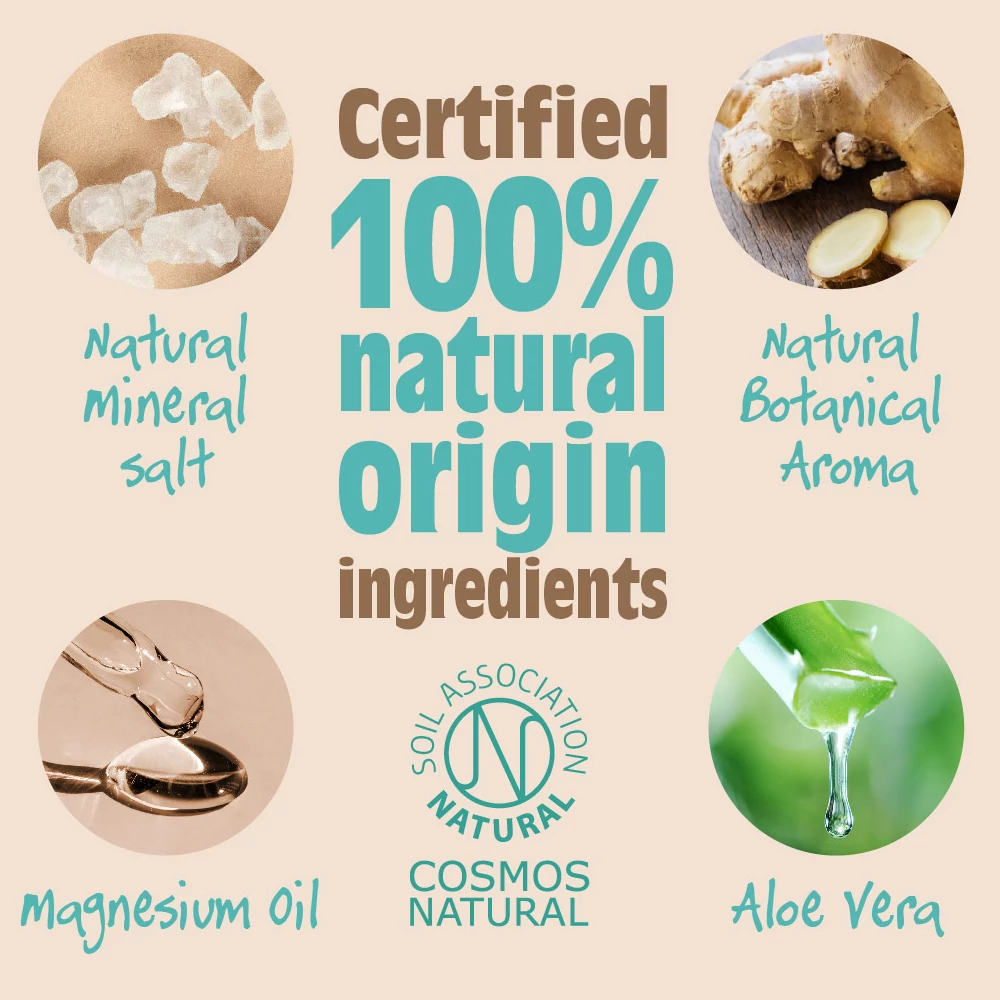 Gyömbér és jázmin illatú, vegán természetes dezodor hosszantartó, hatékony védelmet nyújt a testszag ellen, és 100%-ban természetes összetevőkből készül. Friss, természetes illata fűszeres, citrusos és virágos elemeket tartalmaz, a bogyós gyümölcsök és a szőlő hozzáadott csipetnyi illatával.