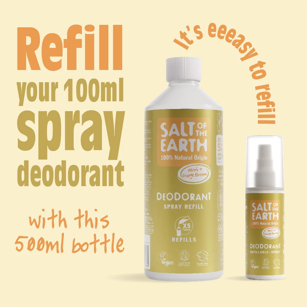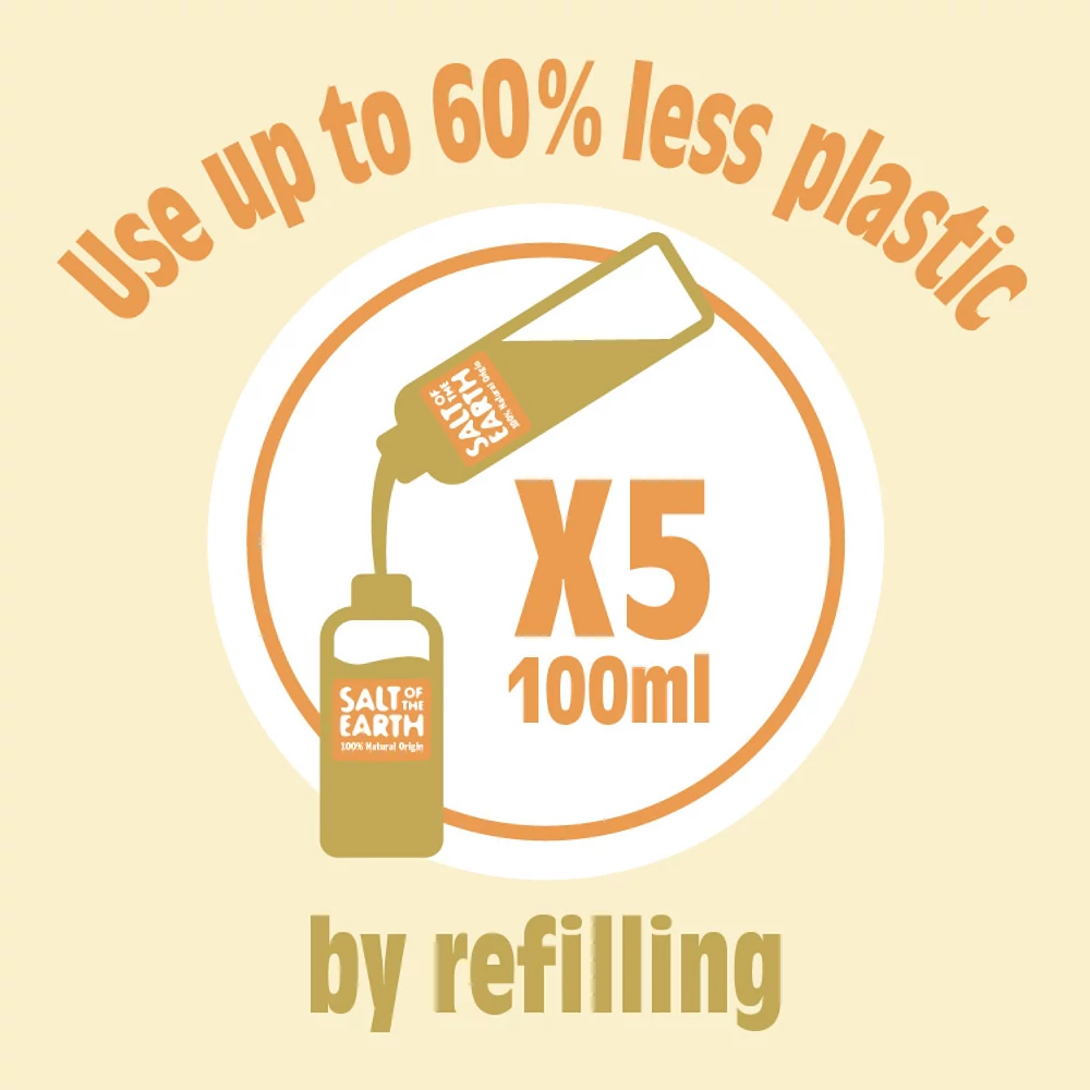 Ezzel a környezetbarát 500 ml-es utántöltővel 5 alkalommal tudod újra tölteni a kedvenc Salt of The Earth Neroli és Narancsvirág dezodor spraydet. Egyetlen újra töltéssel 60%-al kevesebb műanyagot használsz, mintha 5 alkalommal megvennéd a 100 ml-es kiszerelést. Az utazó kiszerelésű spray utántöltésére is alkalmas.