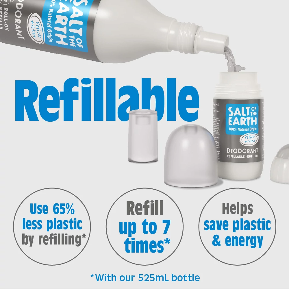 Újratölthető - a golyós dezodor csomagolását kifejezetten úgy tervezték, hogy könnyen újratölthető legyen az 525 ml-es roll-on utántöltő flakonok egyikével. Egy golyós dezodor utántöltő palack 65%-kal kevesebb műanyagot használ, mint hét golyós dezodor. Segíts kevesebb műanyagot és energiát felhasználni!