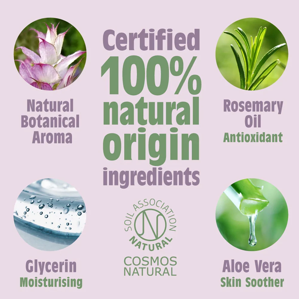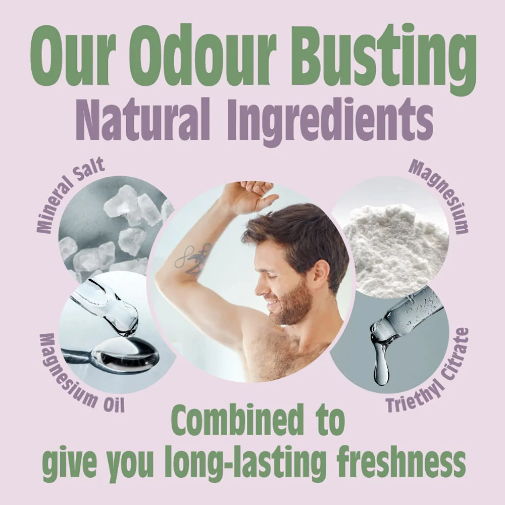 Aqua, Potassium Alum, Triethyl Citrate, Sodium Lactate, Magnesium Chloride, Decyl Glucoside, *Parfum, Aloe Barbadensis Leaf Juice Powder**, Helianthus Annuus (Sunflower) Seed Oil, Rosmarinus Officinalis (Rosemary) Leaf Extract, Glycerin, Magnesium Hydroxide, Xanthan Gum, Magnesium Carbonate Hydroxide, Phytic Acid, Sodium Anisate. *Limonene, *Linalool, *Citral. *From natural botanical extracts and essential oils. **Organically grown.