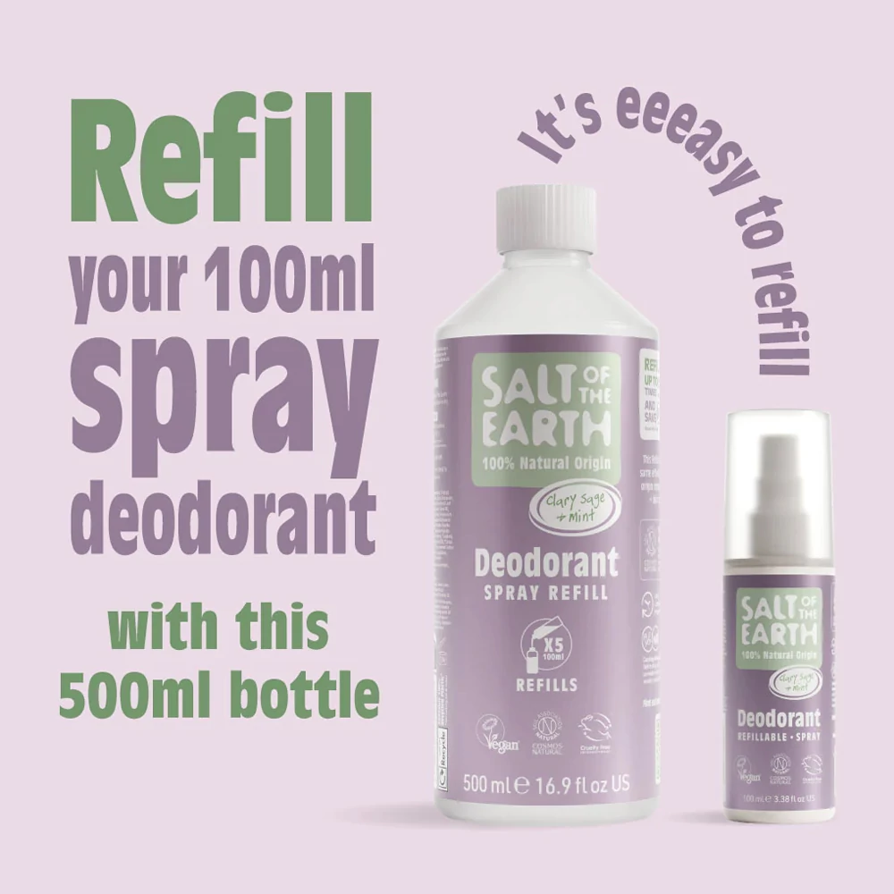 Ezzel a környezetbarát 500 ml-es utántöltővel 5 alkalommal tudod újra tölteni a kedvenc Salt of The Earth Zsálya és Menta dezodor spraydet. Egyetlen újra töltéssel 60%-al kevesebb műanyagot használsz, mintha 5 alkalommal megvennéd a 100 ml-es kiszerelést. Az utazó kiszerelésű spray utántöltésére is alkalmas.