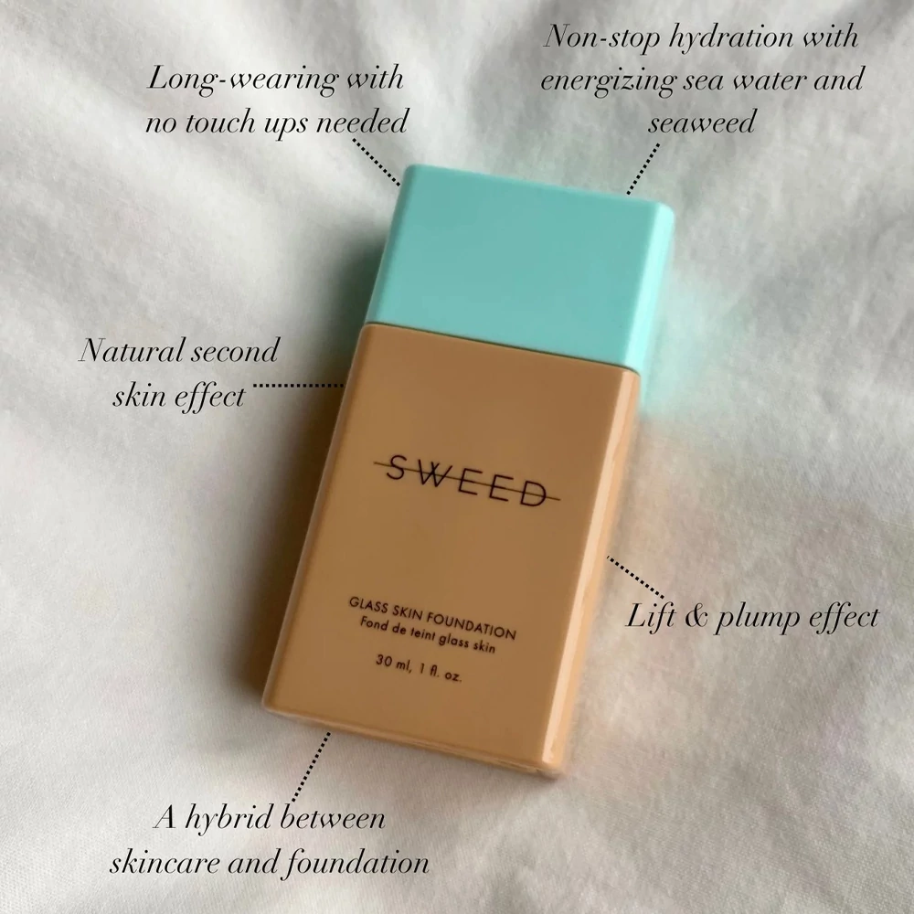 SWEED Beauty Glass Skin Foundation könnyed, folyékony formulája természetes „második bőr” hatást kölcsönöz amely egész nap kitart.