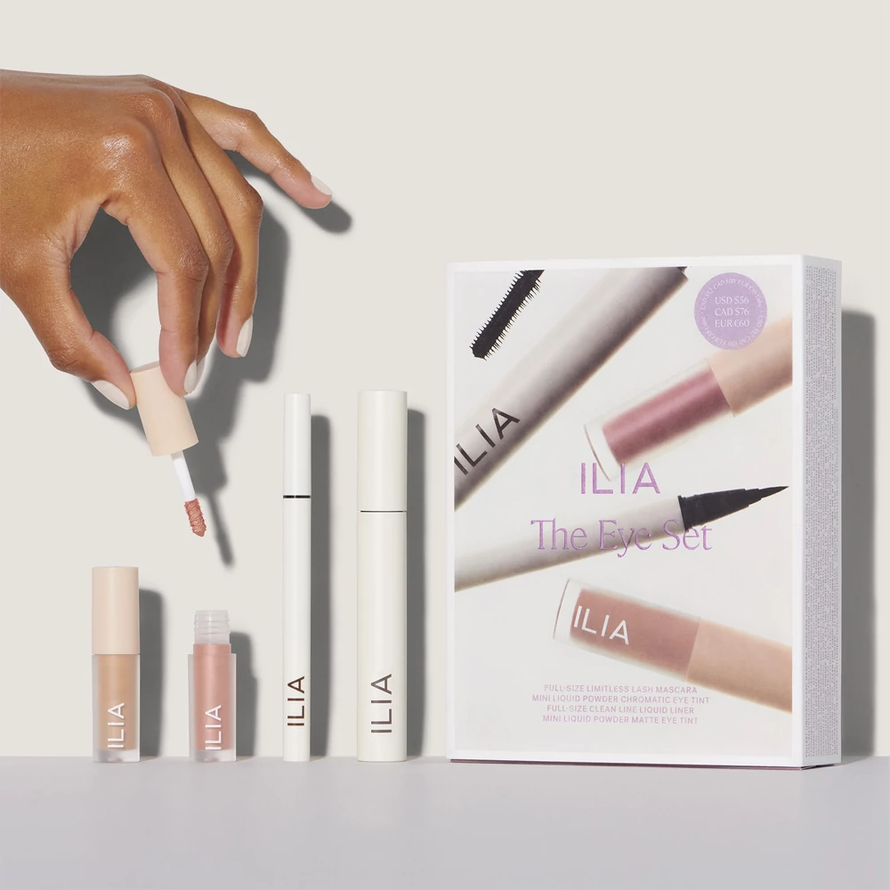 Csodás tekintet azonnal, ünnepi szettbe csomagolva minden, ami ehhez szükséges! A limitált kiadású Eye Set a márka díjnyertes szempillaspirálját, folyékony szemhéjtust és különleges krémből púderré változó szemhéjfestéket tartalmazza kétféle árnyalatban és finishben.